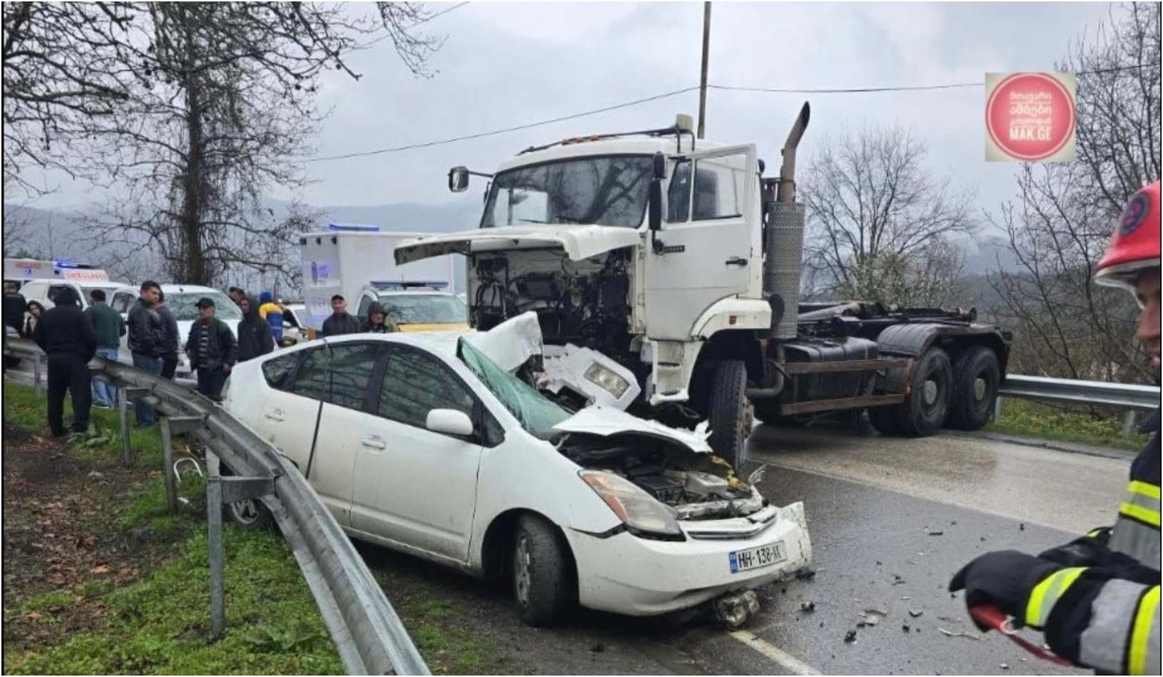თვითმხილველების განცხადებით, სატვირთო ავტომობილის მძღოლმა კონტროლი დაკარგა, რამაც შეჯახება გამოიწვია.