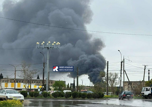 რუსთავში საწარმოო ზონაში ძლიერი ხანძარია.