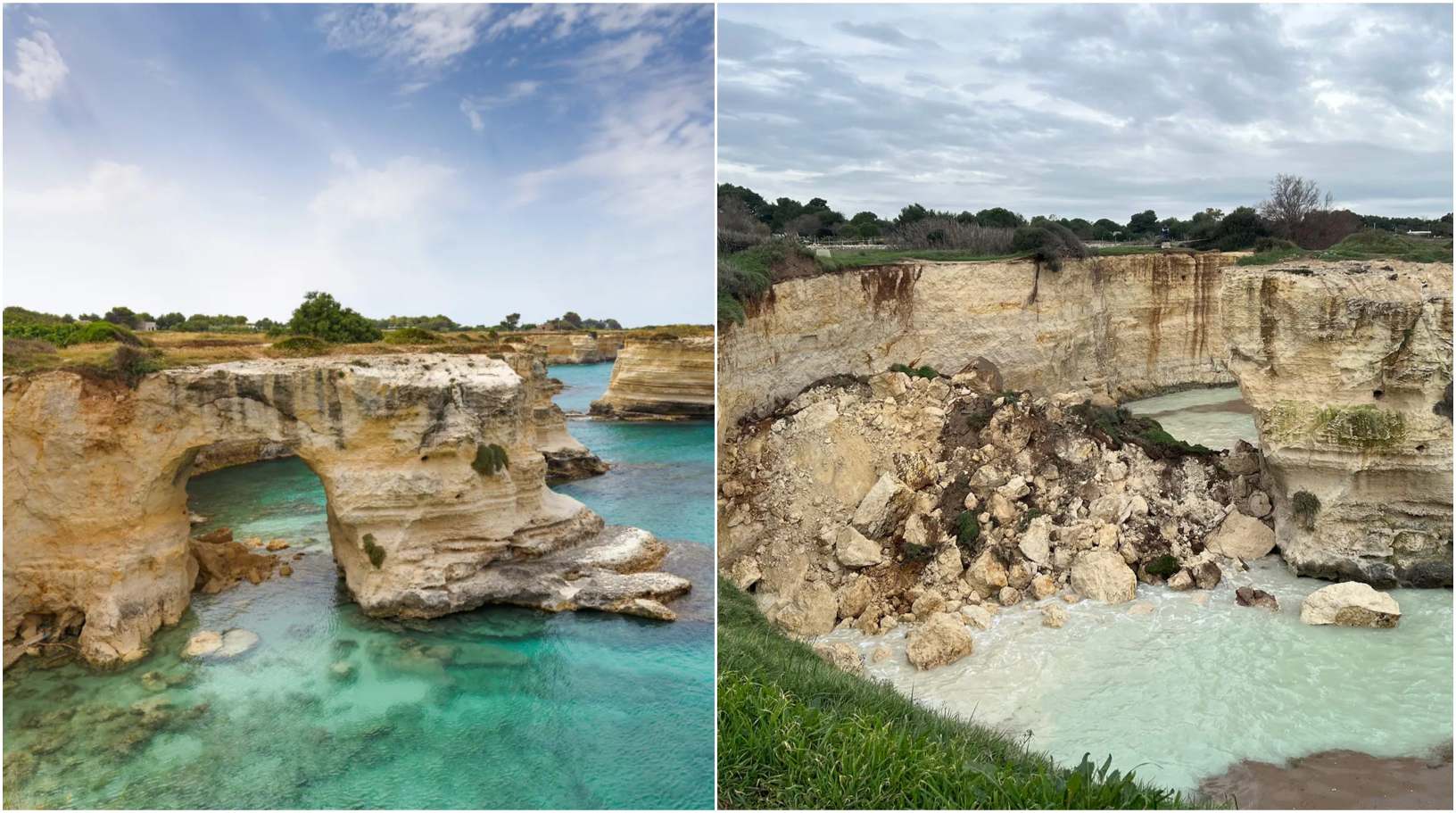 „კორიერე ლეჩეს“ ცნობით, სანტ’ანდრეას კლდე, რომელიც ასევე ცნობილია, როგორც „შეყვარებულთა თაღი“, სამხრეთ-აღმოსავლეთ იტალიაში, ადრიატიკის ზღვის სანაპიროზე ჩამოინგრა. ჩამონგრევა 14 თებერვალს მოხდა, იმავე დღეს, როდესაც მსოფლიო ვალენტინობის დღეს აღნიშნავდა. ჩამონგრევის მიზეზი ამინდის პირობები და ზღვის ეროზია გახდა. მელენდუნიოს მერმა, მაურიციო ჩისტერნინომ, ჩამონგრევა „გულში ძლიერ დარტყმად“ შეაფასა. მან თაღი იტალიის სანაპიროზე ერთ-ერთ ყველაზე ცნობილ ღირსშესანიშნაობად მოიხსენია.
