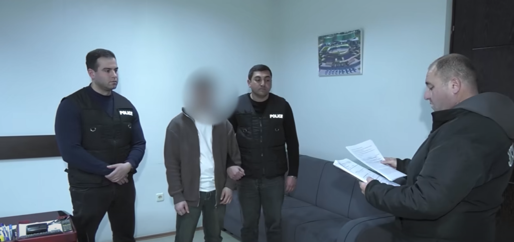 კახეთის პოლიციის დეპარტამენტის თანამშრომლებმა, დიდი ოდენობით ქონების მიღების მიზნით, ჯგუფურად ჩადენილი გამოძალვის ბრალდებით, 4 პირი – 2001 წელს დაბადებული ქ.ა., 2002 წელს დაბადებული ე.კ., 1995 წელს დაბადებული ს.ჯ. და წარსულში ნასამართლევი, 1995 წელს დაბადებული შ.კ. დააკავეს.