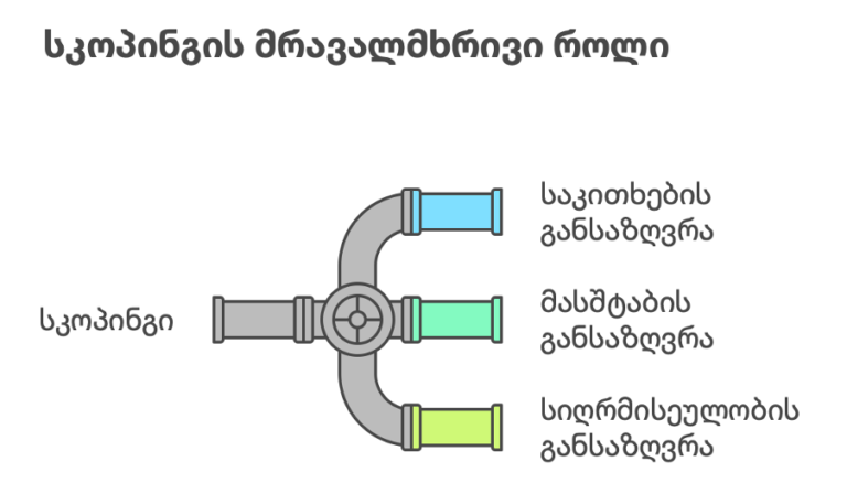სკოპინგის პროცესში ყალიბდება გზშ-ის ანგარიშის შინაარსი, განისაზღვრება, გარემოს რომელი კომპონენტები უნდა შეფასდეს დეტალურად — ჰაერი, წყალი, ნიადაგი, ბიომრავალფეროვნება, ხმაური, სოციალური და ჯანმრთელობის ზემოქმედება და სხვა. რა ალტერნატივები უნდა განიხილონ და რა კვლევები უნდა ჩატარდეს.