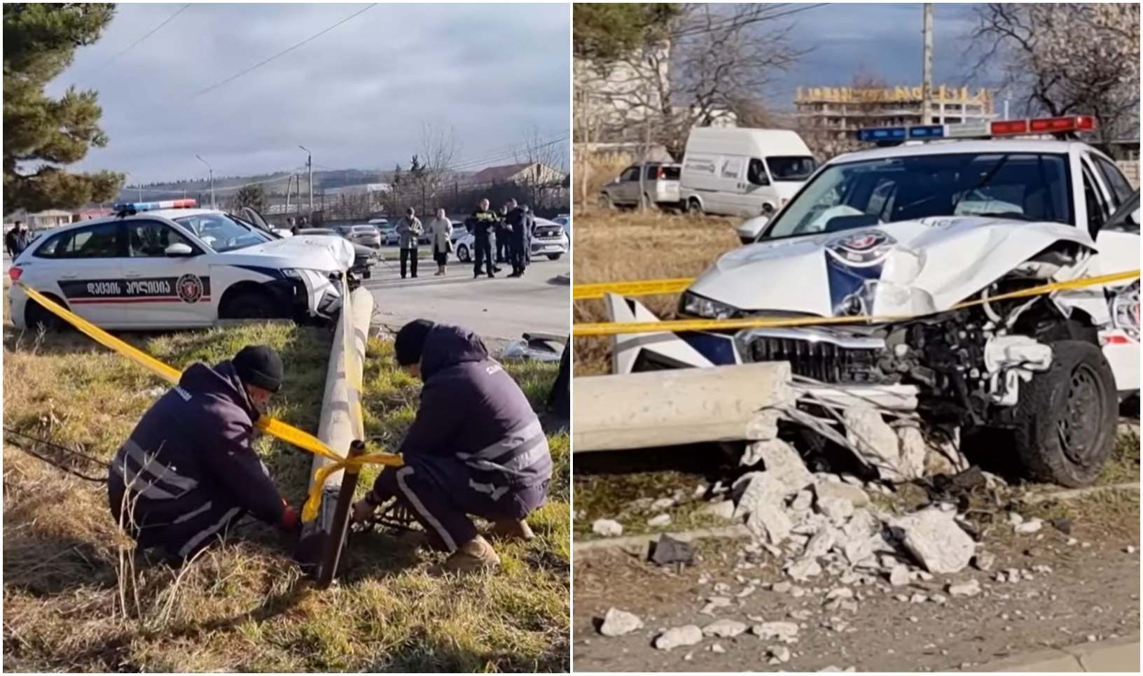 ნახეთ ვიდეო – შეჯახების შემდეგ დაცვის პოლიციის ავტომობილი განათების ბოძს შეეჯახა და მოგლიჯა