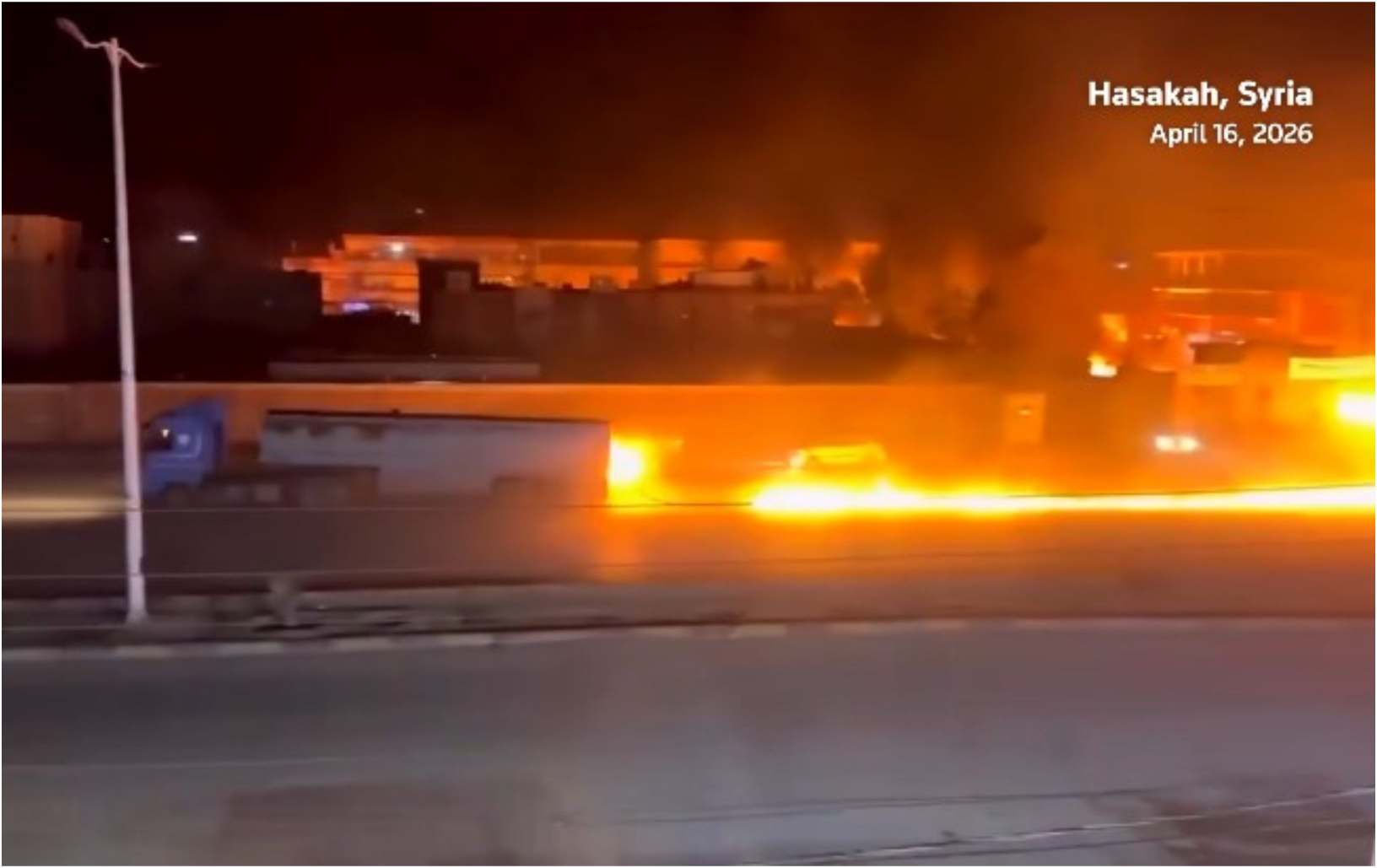 სირიის ჰასაკას პროვინციის ცენტრში, ბენზინგასამართ სადგურზე ხანძრის გაჩენის შემდეგ, ცეცხლმოკიდებულმა ბენზინმზიდმა ქალაქში გააგრძელა მოძრაობა და ქუჩაში ცეცხლის კვალი დატოვა;