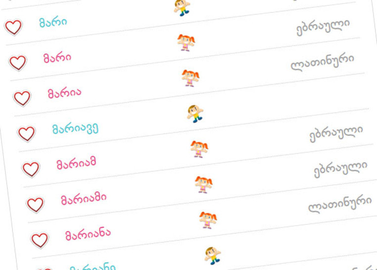 10 ყველაზე გავრცელებული სახელი საქართველოში: