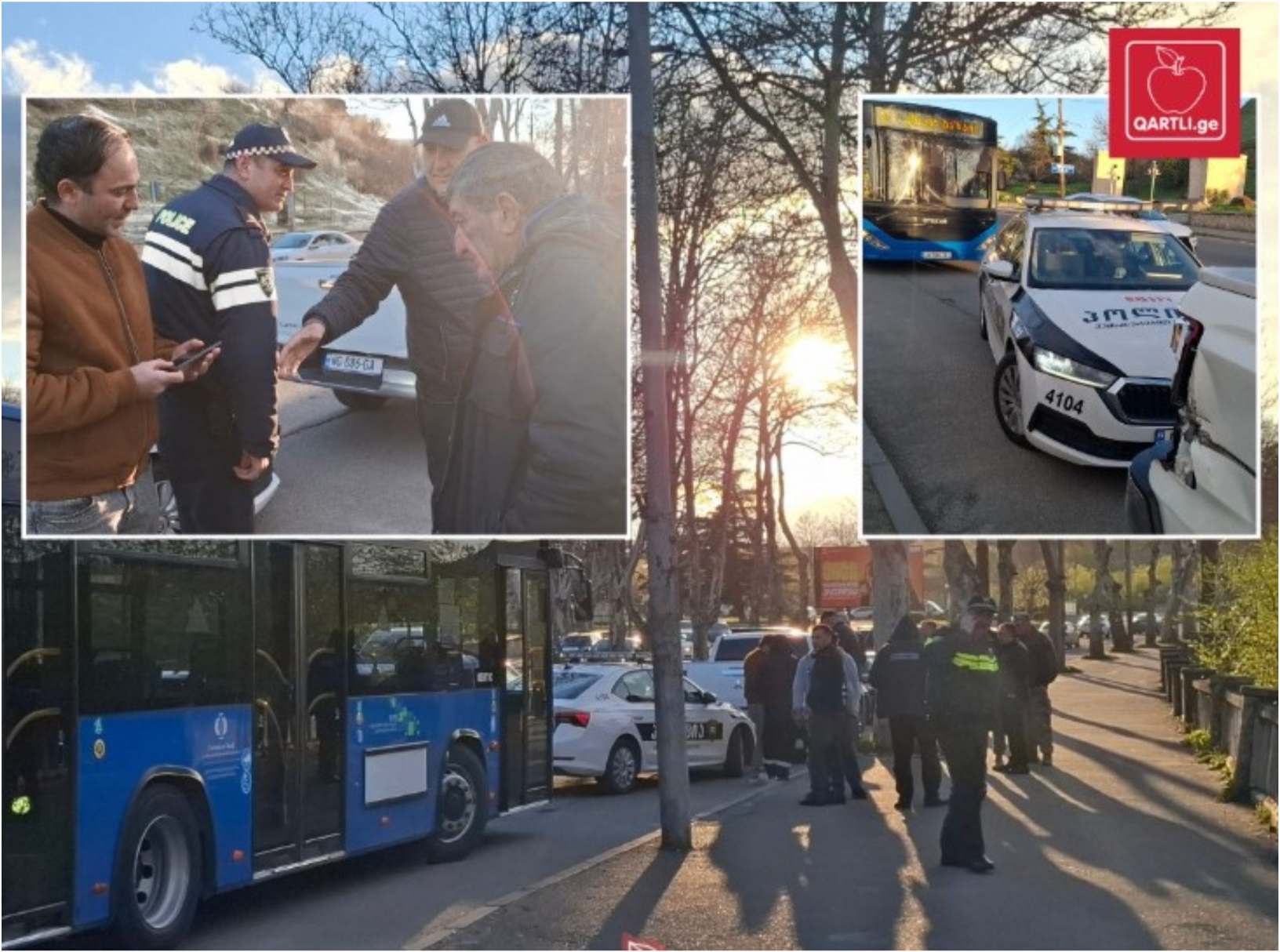 სამგზავრო ავტობუსს პოლიციის პიკაპი დაეჯახა – ავტოსაგზაო შემთხვევა გორში